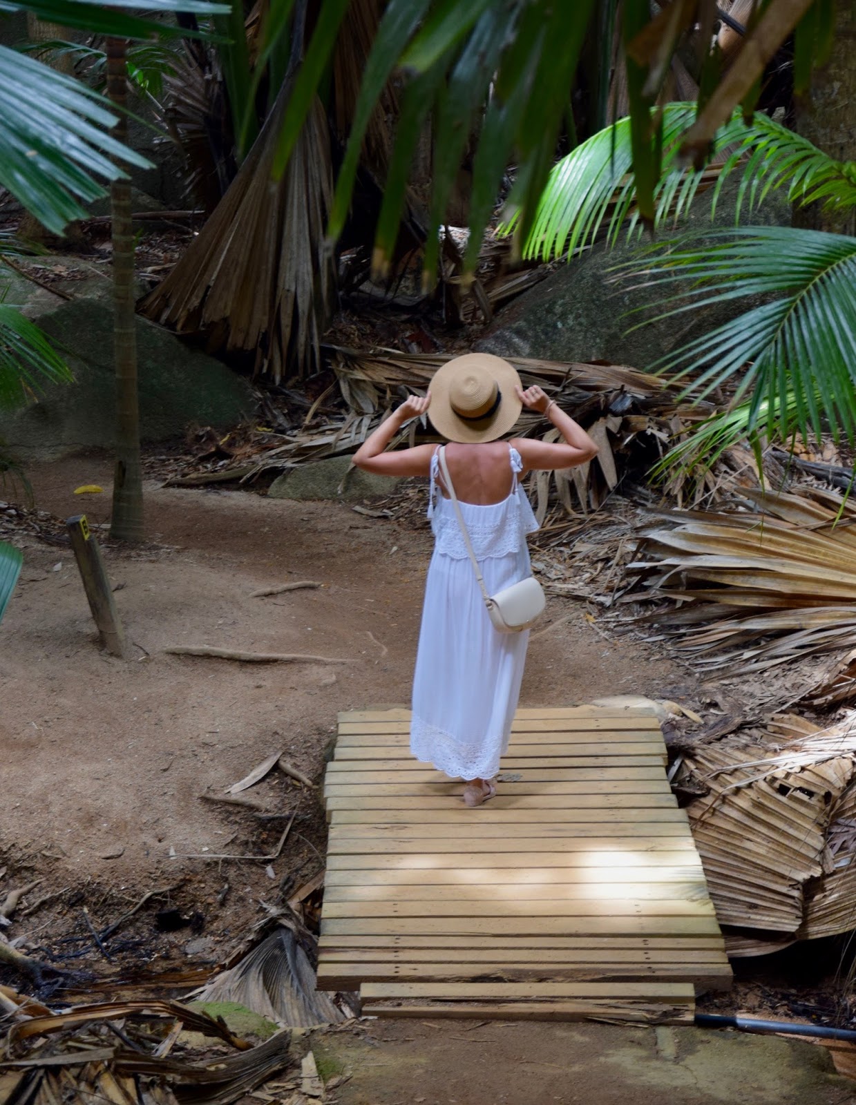 Odwiedzenie Parku Narodowego na Praslin jest więc punktem obowiązkowym podczas pobytu na Seszelach. Owoce żeńskiej palmy kokosowej Coco de Mer potrafią mierzyć do 24 m, owoc ten wpisany jest do Księgi Rekordów Guinnessa jako największy orzech na świecie, a dojrzewa około 7 lat, jego kształt przypominam żeńskie pośladki. Z kolei owoc męski wygląda jak męskie przyrodzenie, na żywo wygląda to naprawdę zaskakująco. Podsumowując, park Vallee de Mai zrobił na mnie duże wrażenie i z chęcią bym tam jeszcze wróciła. Poczułam się tam jak w Księdze Dżungli, cały pobyt na Seszelach był jak bajka, jak w filmie o przygodach Robinsona Crusoe. Dlatego muszę się podzielić z Wami tym pięknym miejscem.